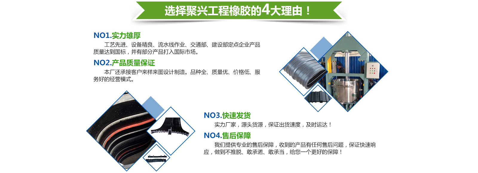 衡水聚興工程橡膠有限公司,位于河北省衡水市榕花街,石德高速,石德鐵路,京九鐵路在此交匯,106國道,石黃高速由境內(nèi)穿過。得天獨厚的地理位置為公司的發(fā)展創(chuàng)造了良好的交通條件。本廠工藝先進、設備精良、流水線作業(yè)、交通部、建設部定點企業(yè)產(chǎn)品質(zhì)量達到國標,并有部分產(chǎn)品打入國際市場、我廠主要生產(chǎn)止水帶、橋梁支座、輸送帶、伸縮縫、托滾高壓膠管,并按圖加工各種橡膠制品。同時本廠還承接客戶 ...